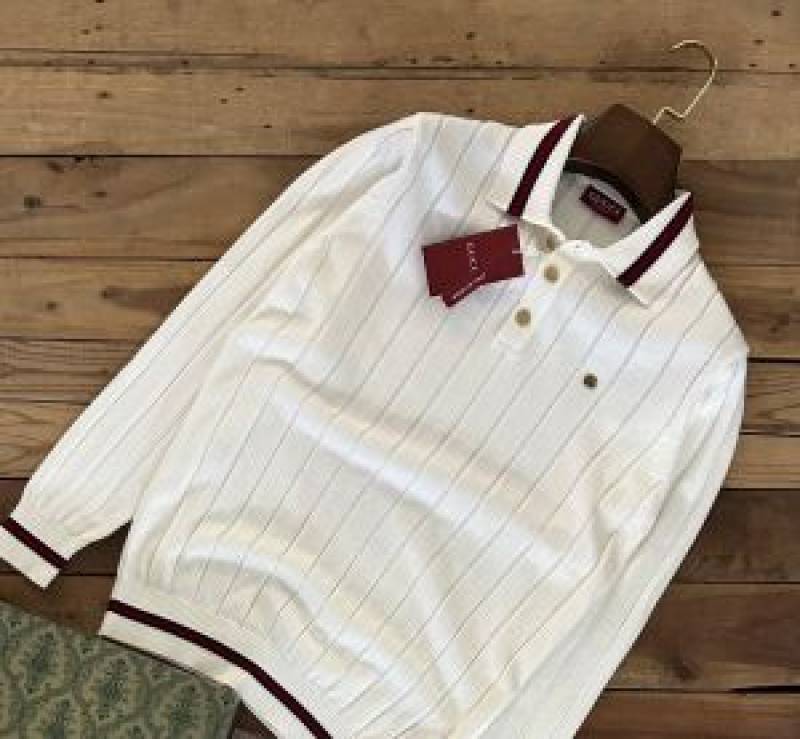 Ralph_Lauren White Knitted Full Sleeves Premium Collar T-shirt F2989-WH
