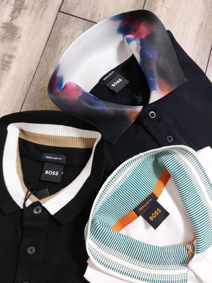 Hugo Bos s White Premium Imported Compact Yarn 240 GSM Interlock Fabric Polo Tshirt with Sleeves Design and Emboss Logo 3415